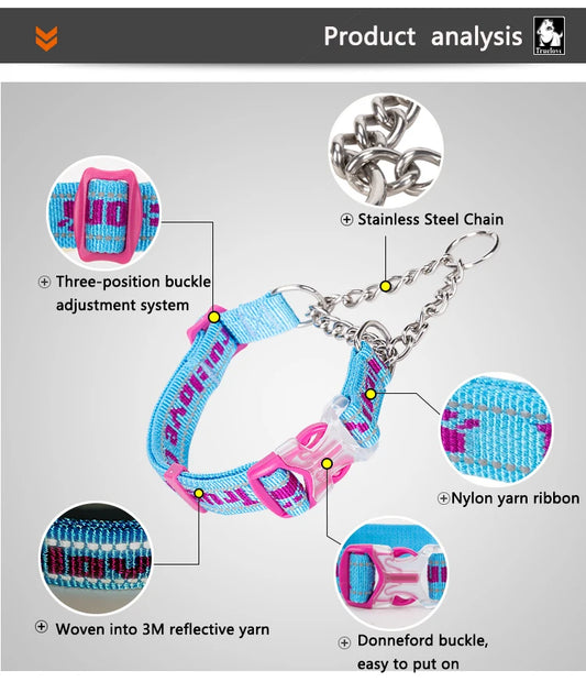 Truelove Dog Collar P-Chain Outdoor Nylon High Quality Stainless Steel Chain Adjustable Reflective for Large Dog TrainingTLC5372
