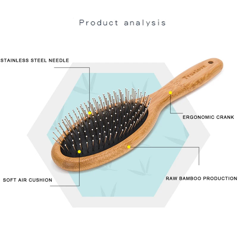 Ya se trate de aseo diario o belleza de competición, el peine de aguja de la serie de bambú original Truelove es su mejor opción. Las agujas personalizadas de acero inoxidable y el cojín de aire masajean el pelaje, no dañan la piel, promueven la circulación sanguínea, eliminan la electricidad estática, abren el arma afilada, hacen que el cabello de la mascota sea más esponjoso y hermoso. El diseño ergonómico del mango es muy cómodo y adecuado para el uso a largo plazo por esteticistas.