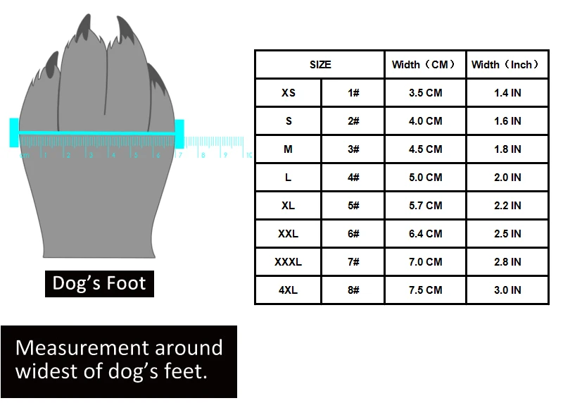 Métodos de medición: Use un trozo de papel para poner el pie en el papel de la mascota, luego use el bolígrafo para dibujar un círculo alrededor del pie de la mascota. A continuación, mida el ancho.